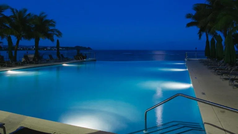 호텔을 대표하는 부대시설인 인피니티 풀은 로비에서 계단을 통해 한층 내려가면 위치해 있다. 풀장에 들어서면 투온 비치가 한눈에 들어오는 절경이 펼쳐진다.