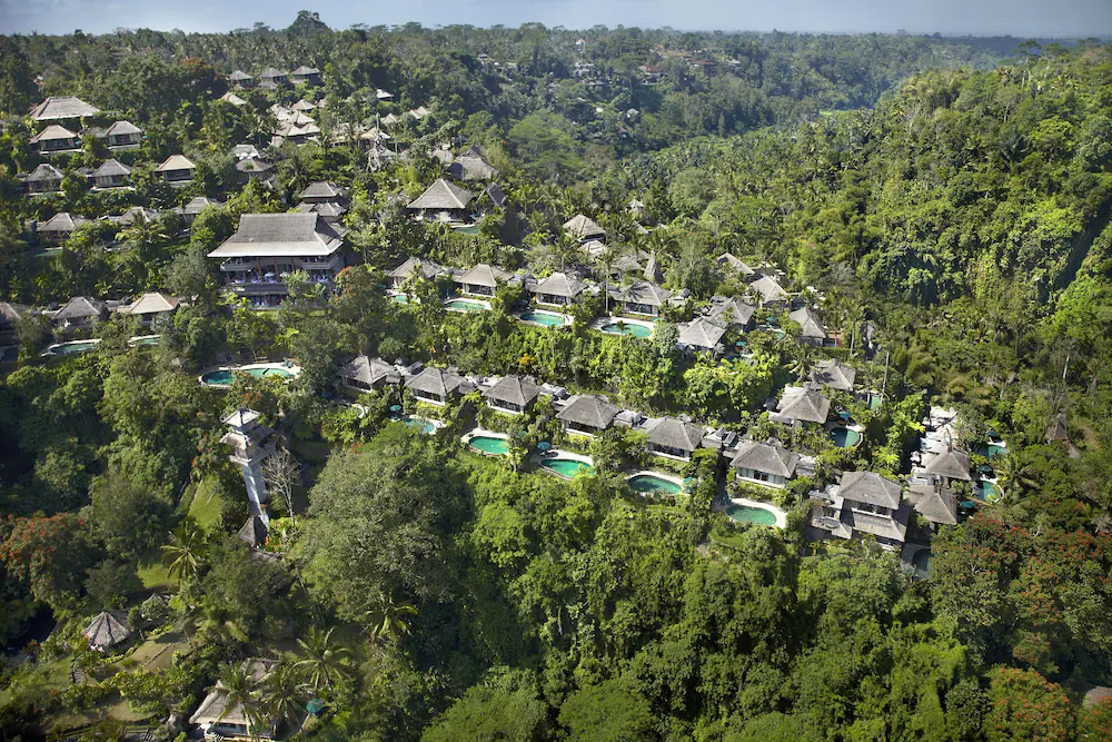 우붓의 푸른 산기슭에 자리 잡은 리조트는 자연석 마감재와 토착 잔디 지붕을 사용해 주변 환경을 해치지 않으며 지어졌다. 객실은 크게 여섯 가지 타입으로 구성됐다.