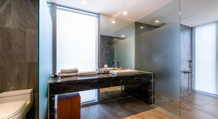 욕실 어메니티로는 샴푸와 린스, 바디워시, 비누, 타월, 헤어드라이기가 제공된다. 일회용품 사용규제 정책에 따라 칫솔과 치약, 면도기, 가운은 비치돼 있지 않는다.