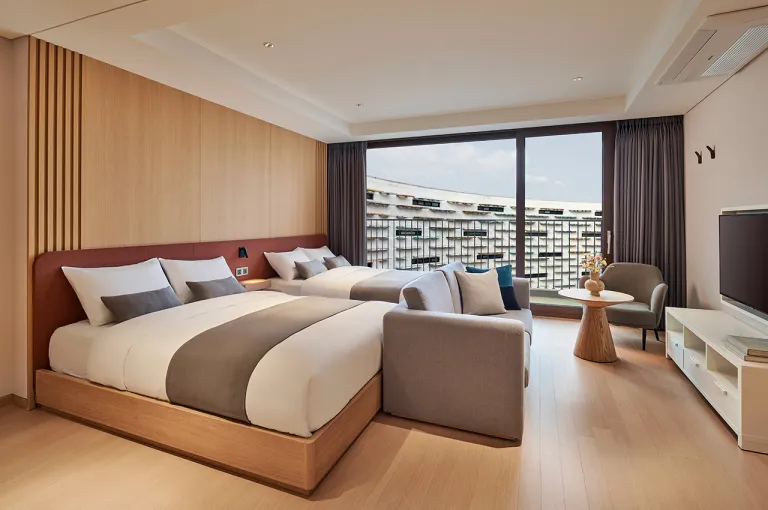 패밀리룸은 특유의 아늑하고 편안한 분위기가 매력적이다. 리조트 부대시설을 즐기거나, 관광을 즐긴 후 가족과 함께 편안한 시간을 보내기 좋은 객실이다.