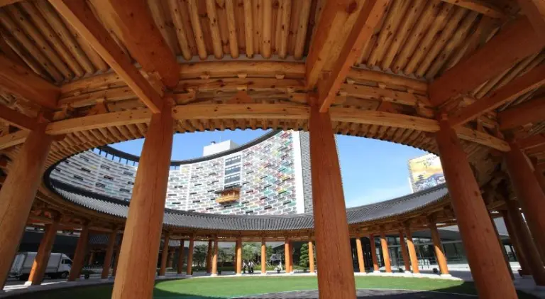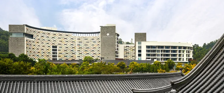 롯데리조트부여 건물은 백제시대의 대표 유물인 산수문전을 현대적으로 재해석하여 세련된 유선형 외관으로 디자인했다. 이와 함께 원형의 한옥 회랑을 세워 전통미와 현대적인 멋이 조화를 이루는 아름다움을 보여주었다.