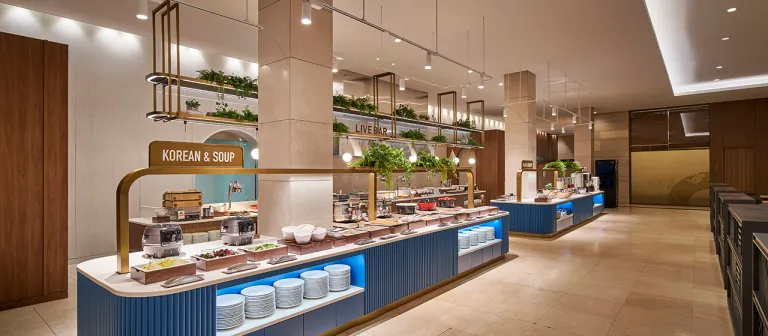 조식은 1층 본디마슬에서 오전 7시 30분부터 10시 사이에 운영된다. 기본적으로 한식이 준비되며, 양식, 중식, 일식까지 고루 갖춘 뷔페식으로 제공된다. 이용 금액은 1인 기준으로 성인 29,000원 / 소인 19,000원 / 유아 14,000원이다.