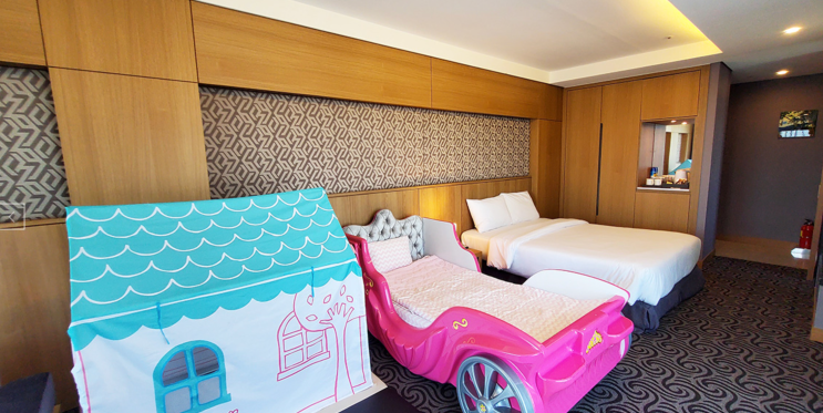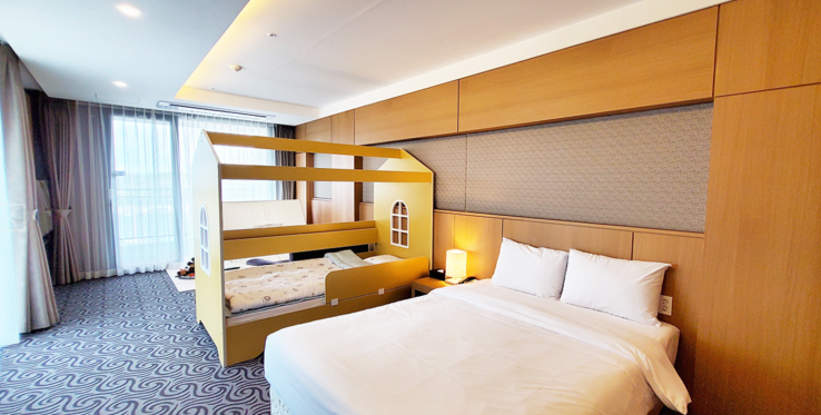 특히나 어린아이와 같이 투숙하시는 분들은 이 룸을 주목해 보자! 키즈 스튜디오 더블룸으로 더블베드 1개와 싱글 키즈 베드 1개가 갖추어진 객실이다.