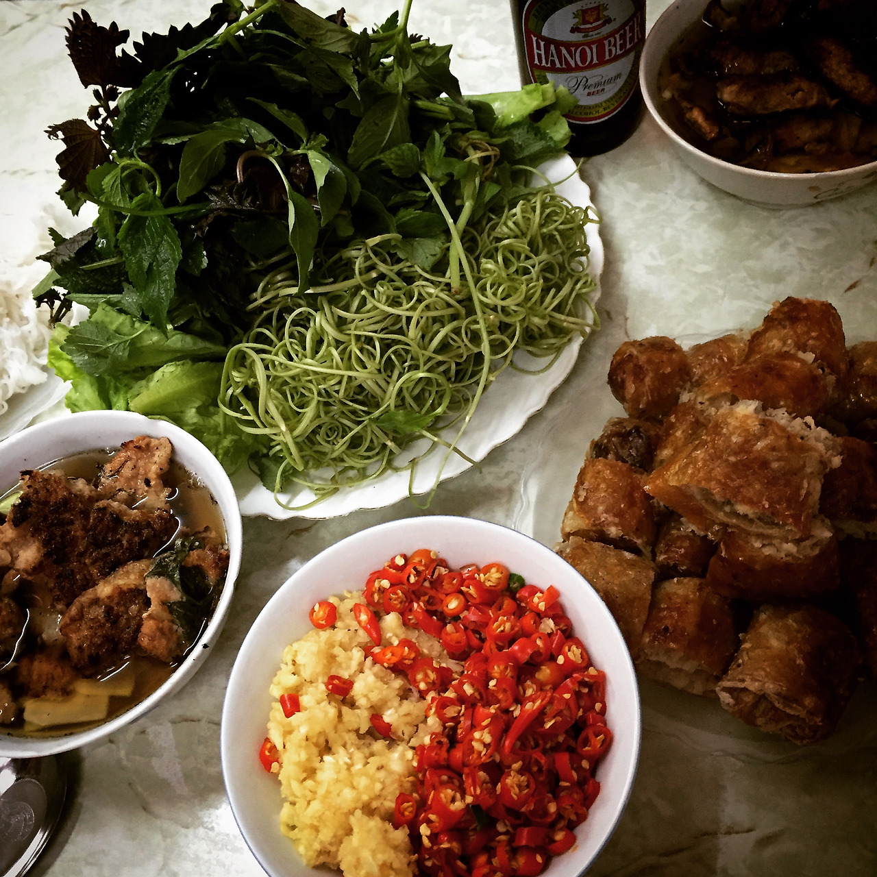 국내에서는 쌀국수가 가장 유명하지만 개인적으로 추천하고 싶은 음식은 오바마가 방문하고 또 이 것을 신서유기에서 언급하여 더욱 화제가 되고 있는 분차로 돼지갈비에 육수를 넣고 쌀국수 면과 야채를 찍어먹는 음식으로 달콤 상큼 짭짤 매콤한 맛이 모두 어우러진 최고의 로컬 음식이다.