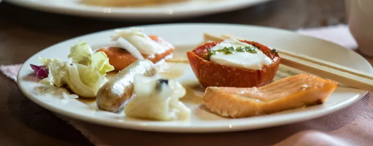 패키지를 이용할 경우 조식은 대체로 더 살레 레스토랑에서 7시부터 10시 30분까지 뷔페로 제공된다. 한식과 양식, 샐러드, 햄, 베이컨, 소시지 등의 메뉴를 갖췄다.