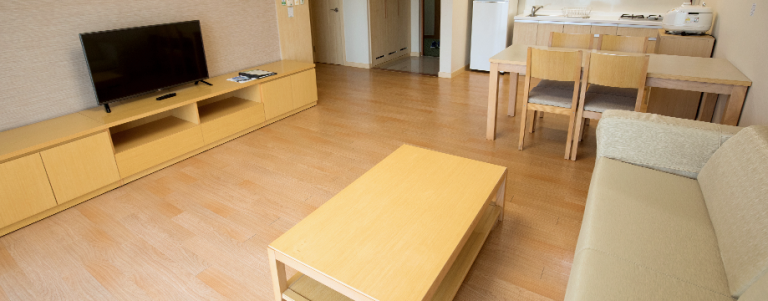 밥솥, 전자레인지, 가스레인지, 식탁, 식기구, 조리기구 등이 다 구비되어 있다. 수건, 비누만 제공되니 샴푸, 컨디셔너, 바디워시, 플렌징 폼 등은 개별로 준비해야 한다.