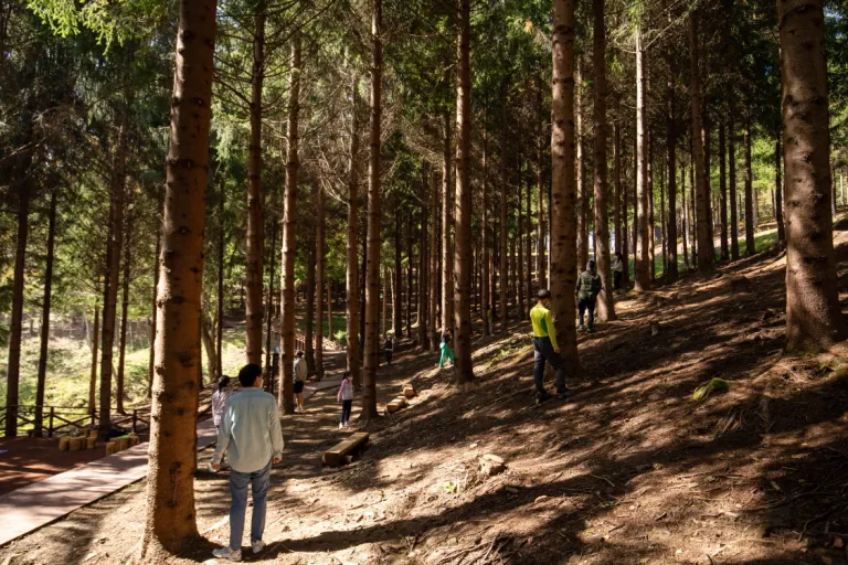 발왕산 케이블카를 이용하여 정상에서 올라 걸으면 천년 수목의 아름다움을 느낄 수 있다. 현재 오픈 기념으로 10월 31일까지 오디오 가이드 이벤트를 한다. 오디오 가이드에서 들려주는 나무 이름을 맞춰서 이메일로 접수하면 추첨을 통해 객실 이용권을 받을 수 있다.
