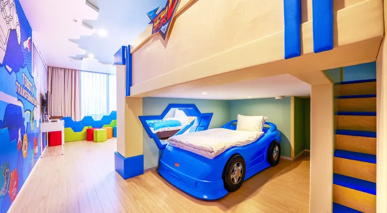 객실은 총 292실을 보유하고 있다. 스탠다드, 디럭스, 패밀리 등 기본적인 타입부터, 또봇, 시크릿, 콩순이를 소재로 디자인 설계된 캐릭터룸이 있어 아이를 동반한 가족 여행에 특히 인기가 높다.