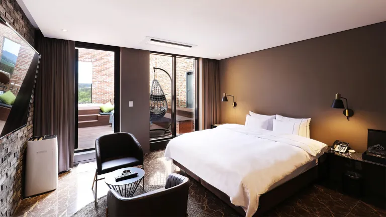 객실 타입에 따라 루프탑 테라스, 개별 풀장, 바비큐 시설, 노래방, 넷플릭스 시청 가능한 스마트 TV도 준비되어 파티룸 호텔로 인기를 끌고 있다.