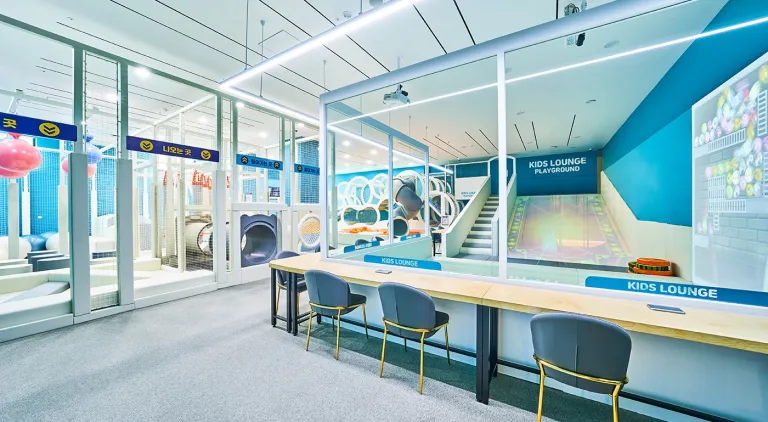 부대시설로는 키즈 라운지와 드로잉 존 등 아이들의 신체활동과 정서발달을 위한 다양한 체험 공간이 준비되어 있다.