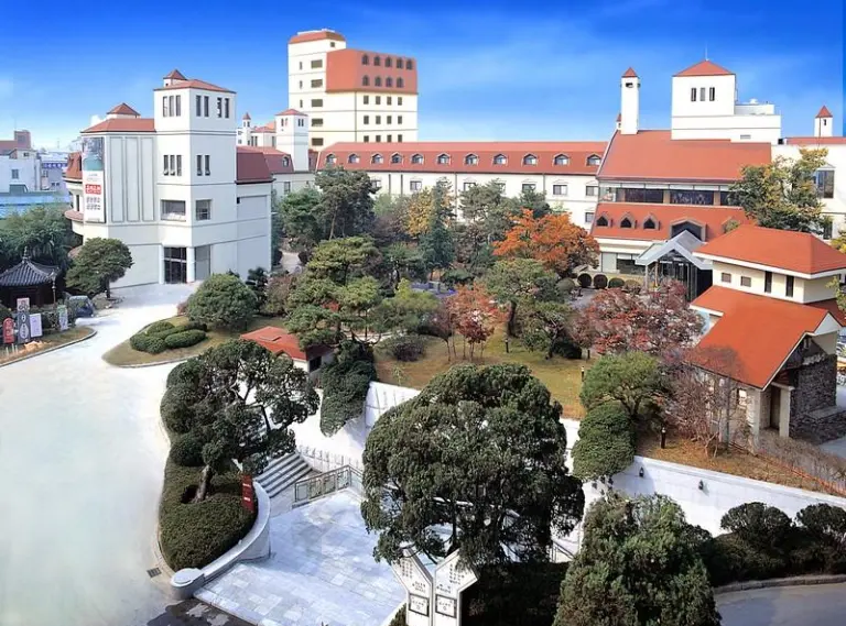 온양 관광호텔은 온양행궁의 터 위에 세워진 유럽풍의 호텔 정원으로 이루어졌다. 고풍스러운 분위기의 외관을 지니고 있다.