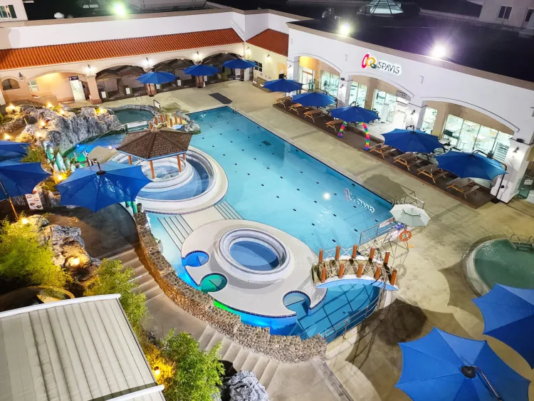 아산 스파비스는 온천수를 이용한 테마온천으로 어린이용 키즈풀, 실내외 온천풀, 수중 마사지 바데풀 등 다양한 유형의 온천을 즐길 수 있다. 대형 파도 풀과 바디 슬라이드 등 어른과 아이들 모두 즐겁게 보낼 수 있다.