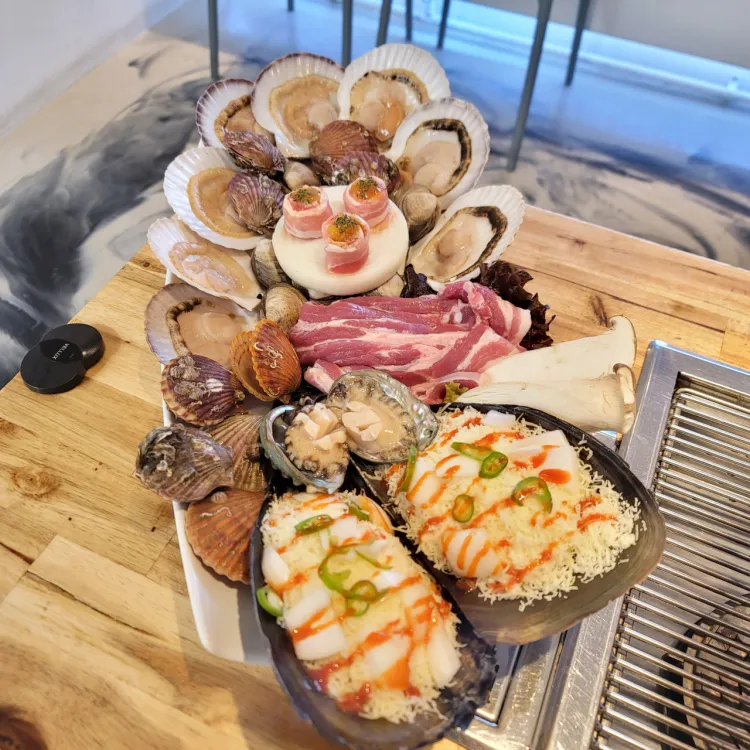 고기랑조개랑은 호텔에서 도보 7분 거리에 위치한 맛집이다. 상호처럼 고기와 조개를 함께 즐길 수 있는 플래터가 인기 메뉴이다. 삼겹살, 목살, 가리비, 전복 등 맛있는 것만 쏙쏙 골라 담았다. 연중무휴 11:00 ~ 22:00로 영업시간도 길어 좋다.