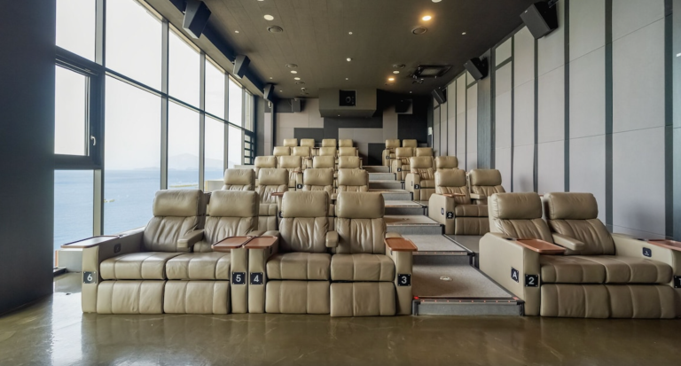 리조트 4층에는 메가박스 영화관이 위치해 있다. 이 영화관은 국내 최초 오션뷰 영화관으로 환상적인 뷰를 자랑하는 영화관이다.