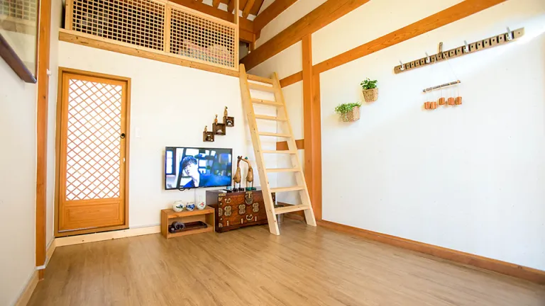 전주 향교가 근처에 있다. 전주 한옥마을과 조금 떨어져 있어 한적하게 머무를 수 있는 숙소이다. 한옥마을 펜션 중에서도 가성비 좋은 곳으로 소문나 있다. 방은 복층으로 되어 있고 아늑하다.