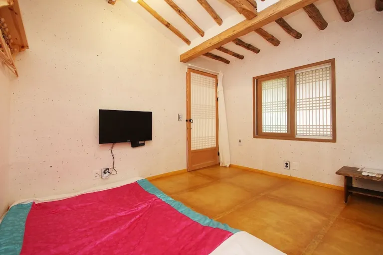 옛 한옥을 수리해서 만든 펜션이다. 그래서 약간 시골 할머니집 느낌이 난다. 객실은 아담하지만 복층이 있어서 답답한 느낌은 없다. 무엇보다 깔끔해서 머물기 좋다. 수건, 샴푸, 컨디셔너, 바디워시, 치약 기본 어메니티가 제공된다.