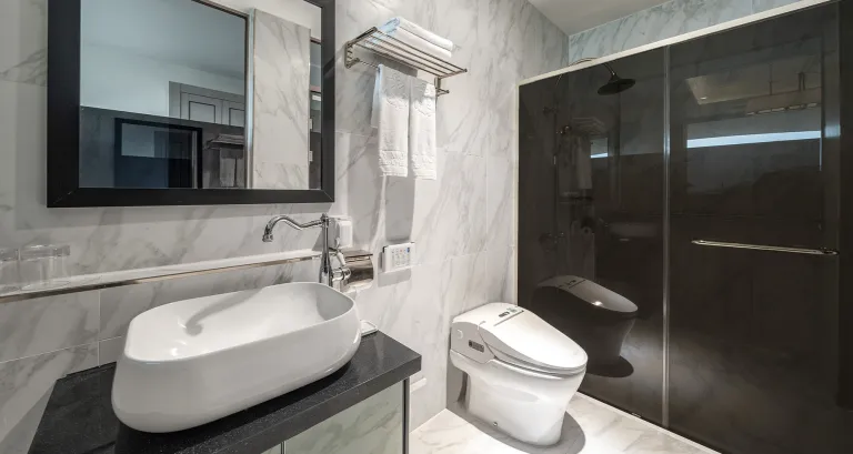 대리석으로 마감된 욕실은 고급스러운 분위기를 풍긴다. 샤워부스와 비데가 설치되어 있으며, 어메니티로는 샴푸와 컨디셔너, 바디워시, 바디로션, 샤워 스펀지 등이 제공된다. 이와 함께 칫솔과 치약, 빗, 수건, 드라이어 등이 준비된다.