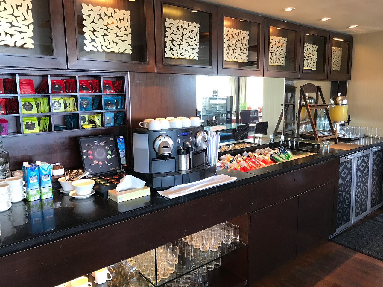 너무나도 즐거운 샹그릴라 탄중아루 리조트이지만 가장 인상 깊은 것은 바로 체크아웃 후에도 사용할 수 있는 스타 라운지이다. 대부분의 비행기가 늦은 밤인 코타키나발루는 체크아웃 후에 시간이 매우 길게 비는 편인데 그때 투숙객들이면 언제든지 이용할 수 있는 리조트의 배려인 것이다. 라운지 안에는 커피 등의 음료는 물론 샤워시설까지 완벽하게 구비가 되어있어 그동안 수영장 등의 리조트 시설을 그대로 이용할 수 있어서 너무나도 편리하게 마지막 하루를 정리할 수 있다.