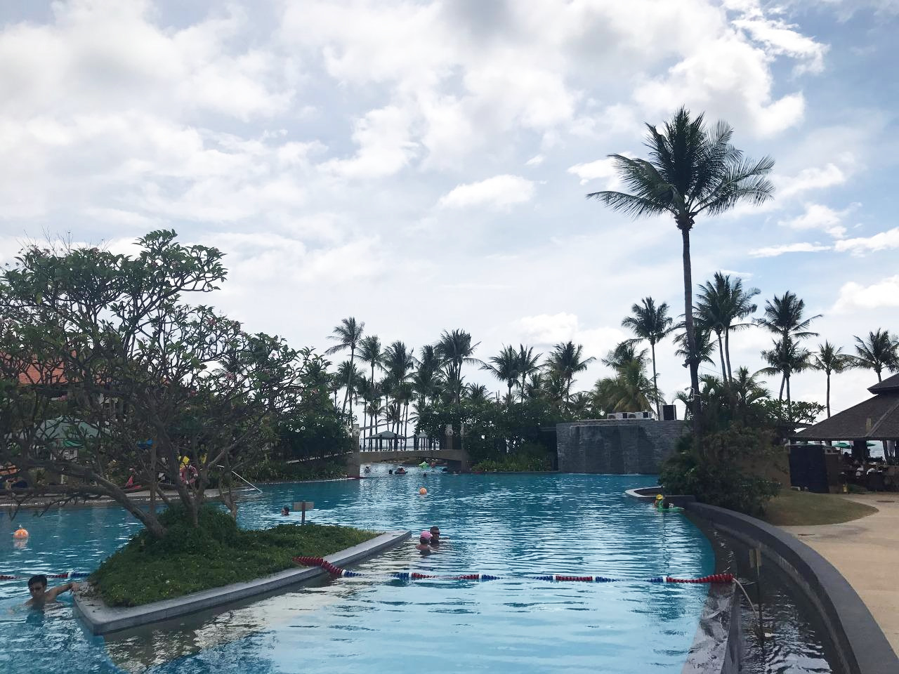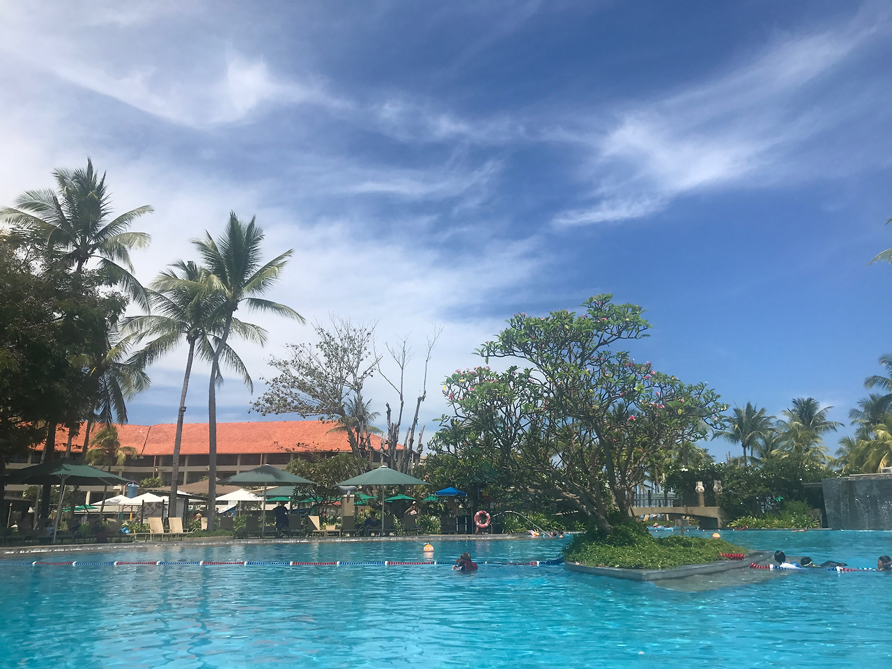 휴양지 리조트의 꽃은 바로 야외 수영장. 각종 인스타에 도배가 되는 해시태그이자 휴양지 리조트들의 자랑이라 할 수 있는데 샹그릴라 탄중아루 역시 수영장에 매우 많은 공을 드리고 있음을 어렵지 않게 느낄 수 있다.