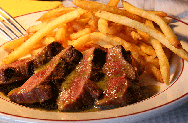 파리에서 가장 유명한 스테이크 집을 꼽으라면 언제나 1순위로 나온다는 르 홀레 드 랑트흐코트. 감자튀김과 함께 제공되는 스테이크는 육즙이 정말 풍부하다. 샹젤리제, 생제르망데프레 그리고 몽파르나스 점 어디든 맛있는 스테이크를 즐길 수 있다. 단 예약은 필수