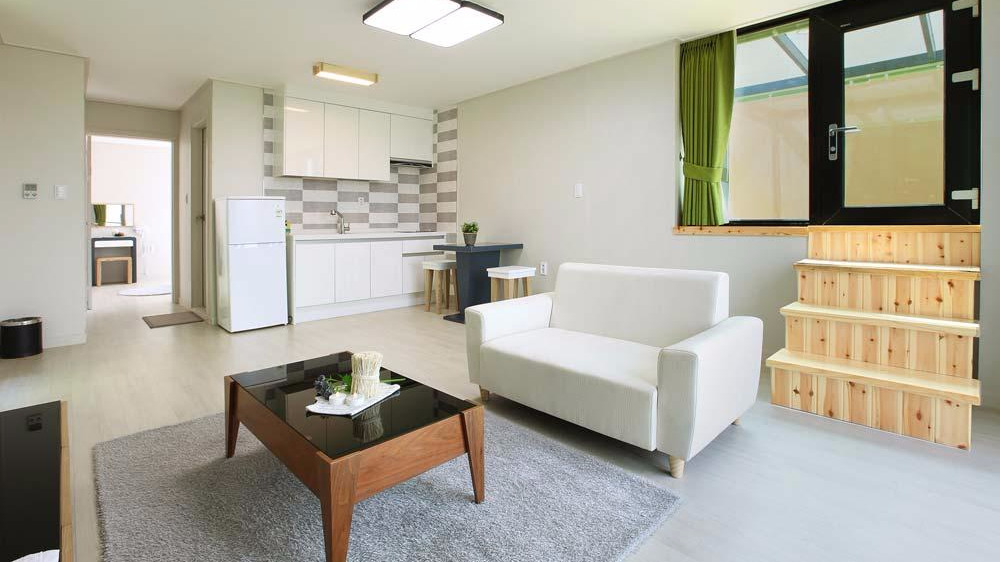 넓은 잔디정원을 끼고 있는 전실 오션뷰 펜션. 해변이 바로 앞에 위치해있는 기가 막힌 입지를 자랑하며 개별 스파와 독립 바베큐장을 갖추고 있다. 바베큐 요금은 2인 당 10,000원.
