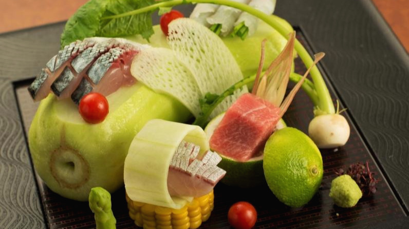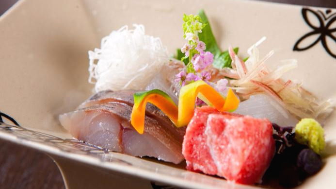 분고 쇠고기와 세키 전어 등 다양한 제철 재료를 활용한 정식 식사는 숙달된 요리장이 총괄하고 있으며 사계절의 제철에 맞는 다양한 요리를 선보이고 있다.
