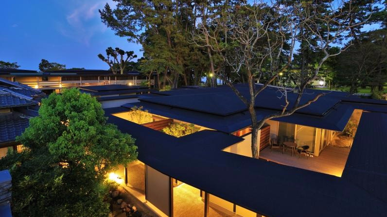 온천 리조트 료칸을 표방하는 벳부의 럭셔리한 숙소. 거실의 넓은 창문과 테라스를 통해 탁 트인 오션뷰를 감상할 수 있다. 객실에 노천탕을 끼고 있으며 대욕장은 1층과 8층에 위치하여 있는데 1층의 온천은 인피니티풀을 연상케 할 정도로 바다를 낀 멋진 경치를 자랑하며 8층은 아득히 보이는 벳부만을 감상할 수 있다.
