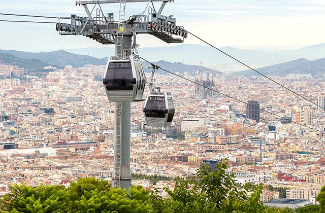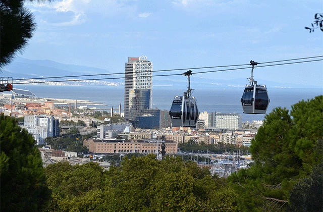 케이블카는 몬주익 언덕을 가장 편하게 올라갈 수 있는 방법이자 올라가는 내내 환상적인 바르셀로나 경치를 구경할 수 있는 일석이조의 시설이다. 바르셀로나의 경치를 높은 곳에서 볼 수 있다는 것만으로도 이들이 아닐 수 없으니.