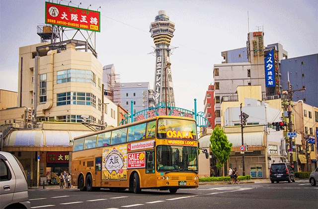 신사이바시까지 오사카 도심 한 바퀴를 크게 도는 순환 버스 코스를 자랑한다.