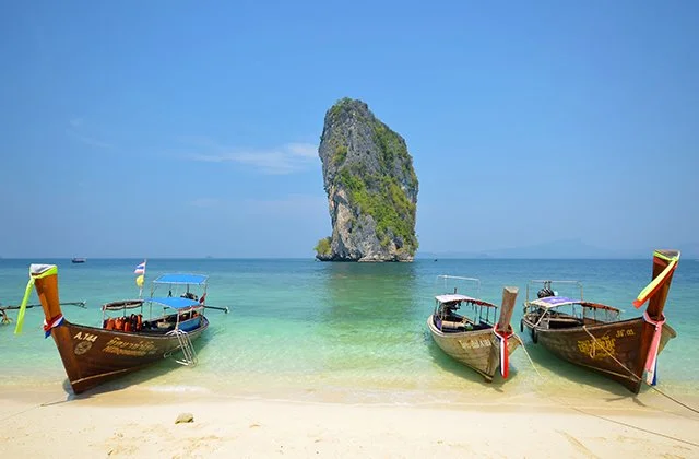 특히 텁섬은 영화 컷스로트에 나온 곳이기도 한 섬으로 썰물 때에는 마치 바다가 갈라지는 것처럼 얕은 수심을 자랑해 물에서 놀기에 좋고 가장 큰 섬인 포다 섬은 파도가 거의 치지 않는 해변을 갖고 있고 물이 워낙 맑아 다양한 열대어를 만날 수 있는 곳으로 유명, 마지막으로 코까이 섬은 닭의 머리를 닮은 기괴한 기암들이 있어서 치킨 섬이라고도 불리는 등 각기 다른 매력을 뽐내기 때문에 지루할 틈이 없을 것이다.
