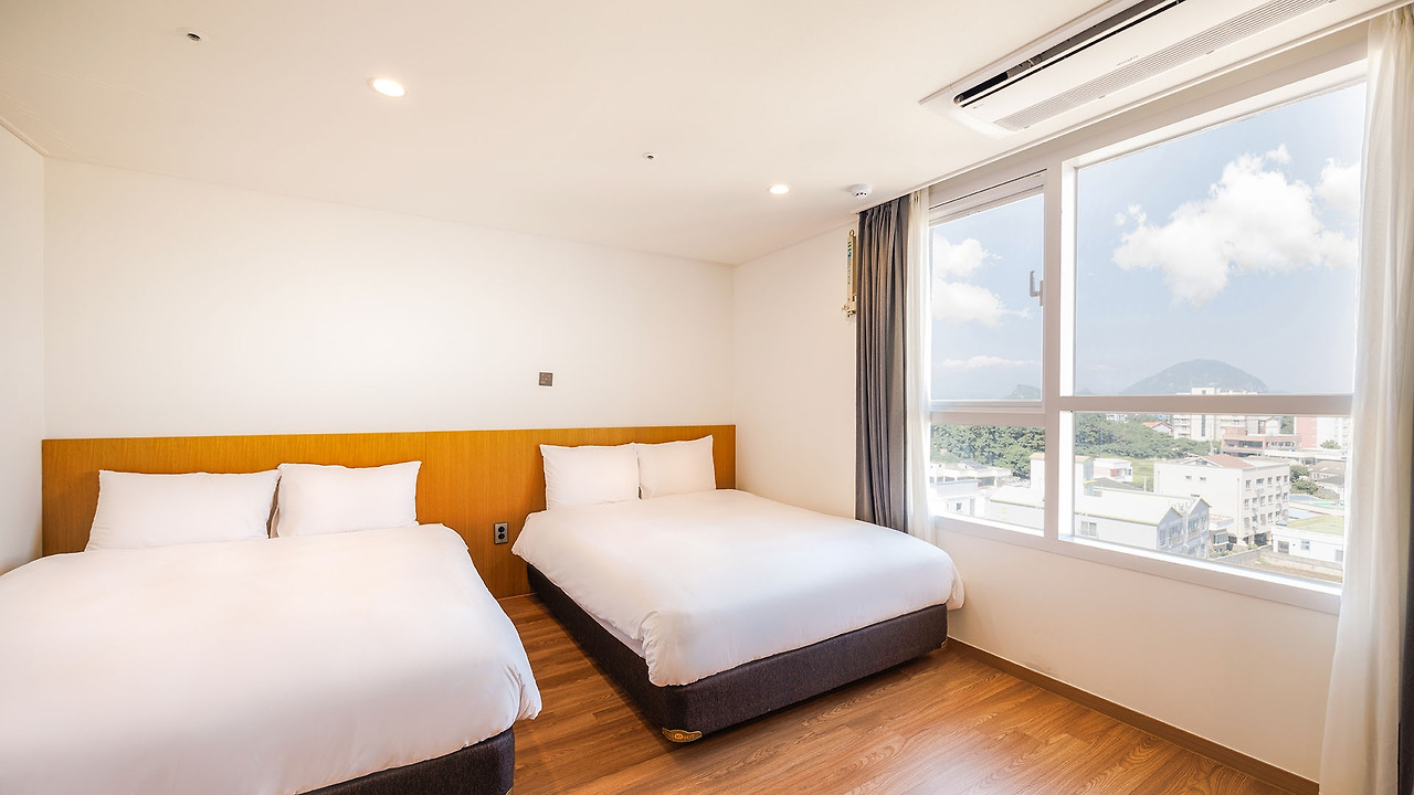 스탠다드 싱글은 혼자 여행하거나 비즈니스 출장을 온 1인 투숙객에게 적합한 실용적인 객실이다. 비교적 아담한 편으로 짐이 많지 않은 1인 여행자에게 특히 편리하고 침대, 작업대, 평면 TV, 미니 냉장고 등 기본 어메니티가 충실히 구비되어 있다. 욕실은 샤워공간이 설치되어 있으며, 간단한 세면 용품과 타월은 잘 정돈되어 제공되는 편이다. 혼자 머물기에는 합리적인 가격대 덕분에 서귀포 가성비 호텔을 찾는 1인 여행자에게 스탠다드 싱글을 자신 있게 추천해 드린다.