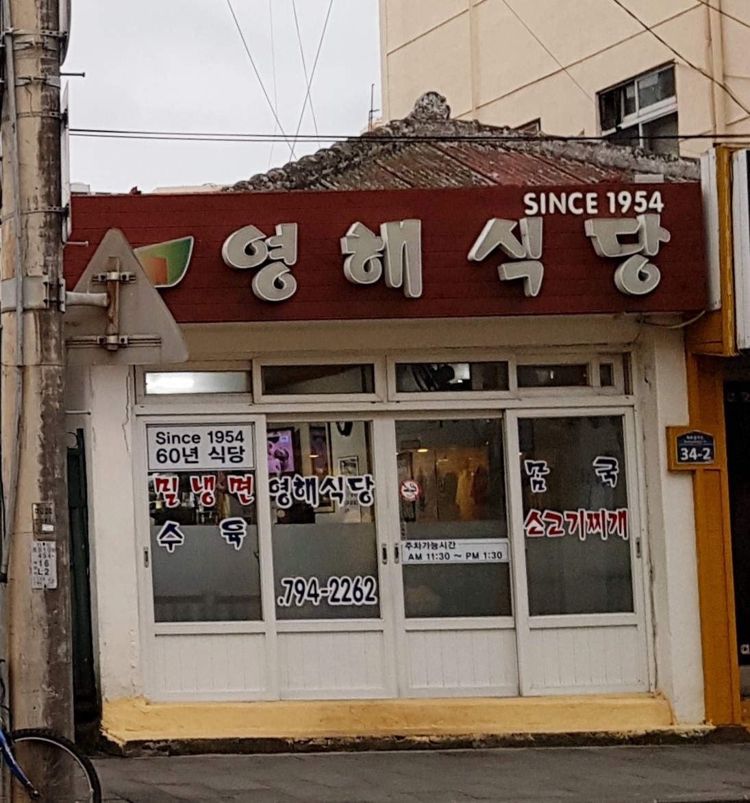 영해식당은 제주 로컬들이 즐겨 찾는 맛집으로 몸국과 고기국수가 대표 메뉴이다. 돼지 뼈 육수에 모자반을 넣어 끓여낸 몸국은 구수하면서도 깊은 국물 맛이 특징이다. 호텔케니모슬포에서 차로 2분 거리에 있어 가볍게 들르기 좋은 위치이다.