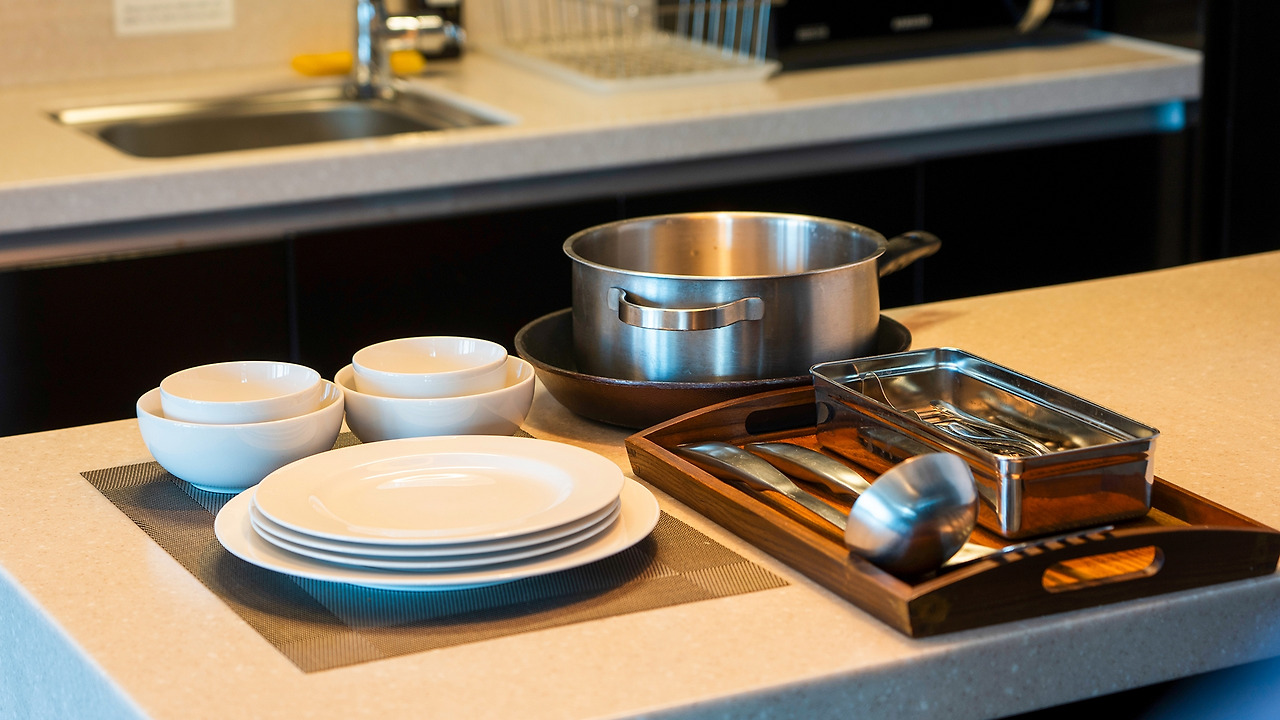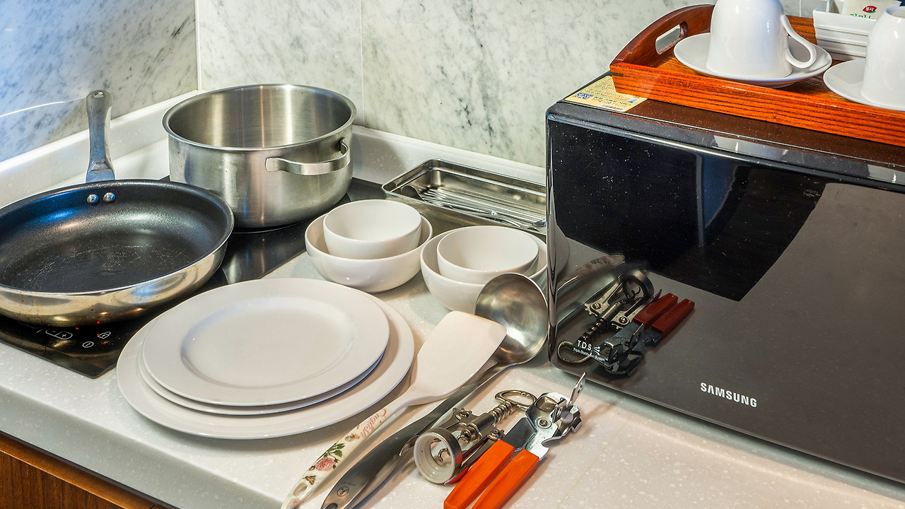 호텔라뮤에뜨는 조식을 별도로 제공하지 않는다. 대신 모든 객실에 전자레인지, 전기밥솥, 전기주전자 등 주방 기구가 마련되어 있어 간단한 취사가 가능하다. 덕분에 가족 단위나 장기 투숙객이 직접 식사를 준비하기에 좋은 부산레지던스형 숙소이다.