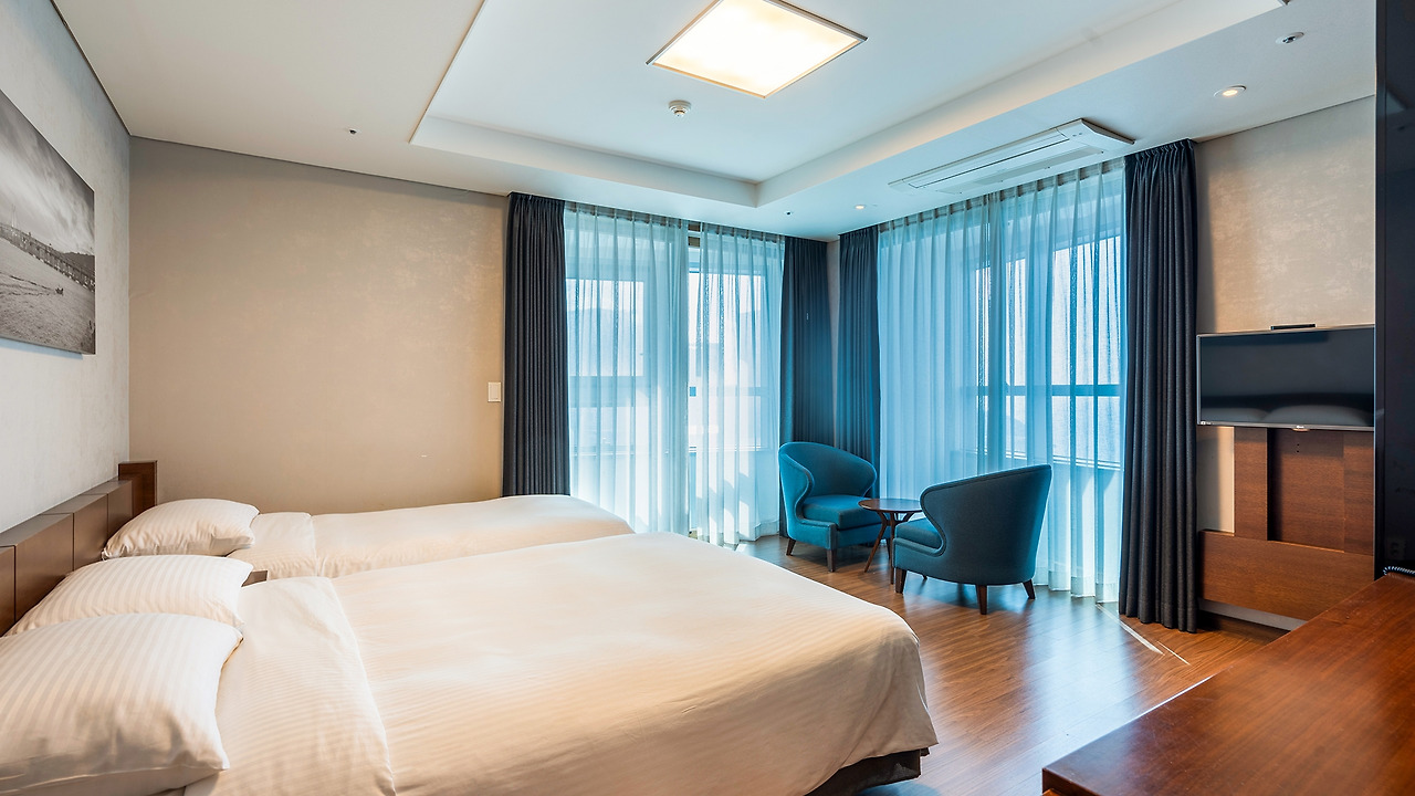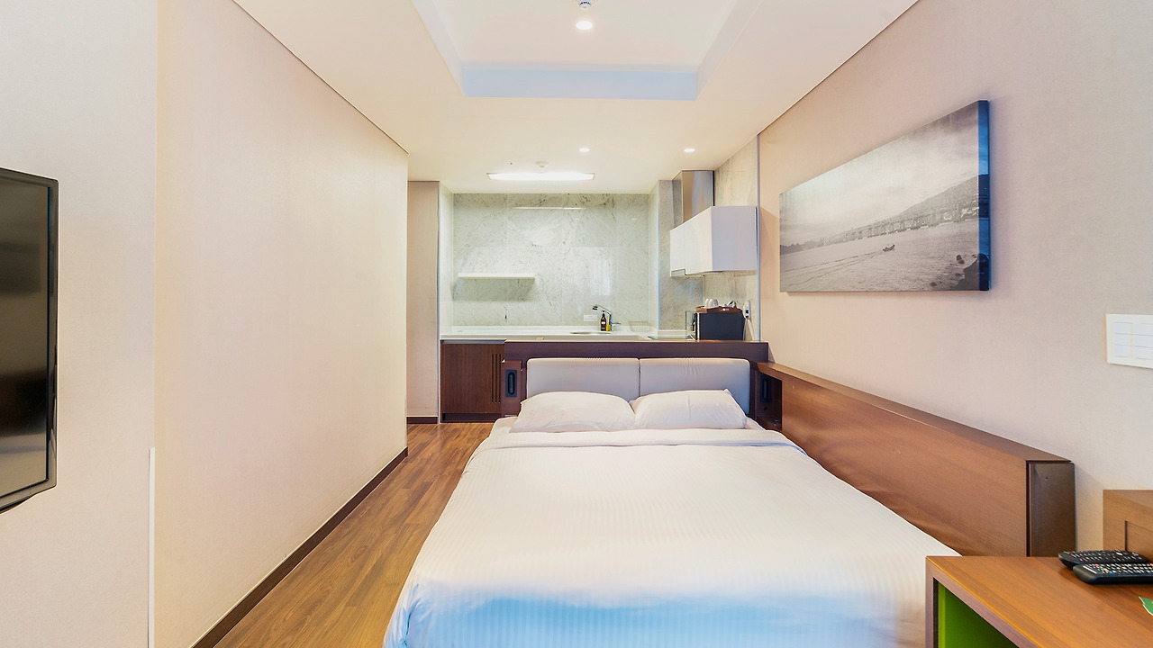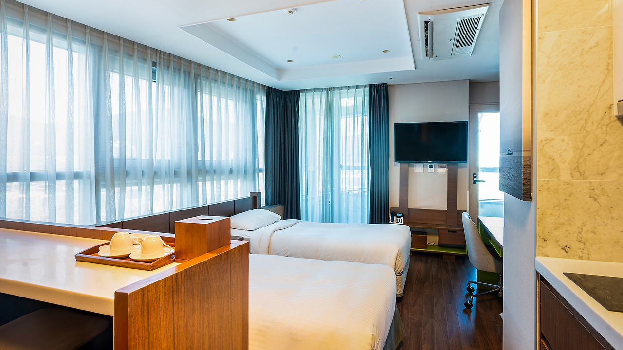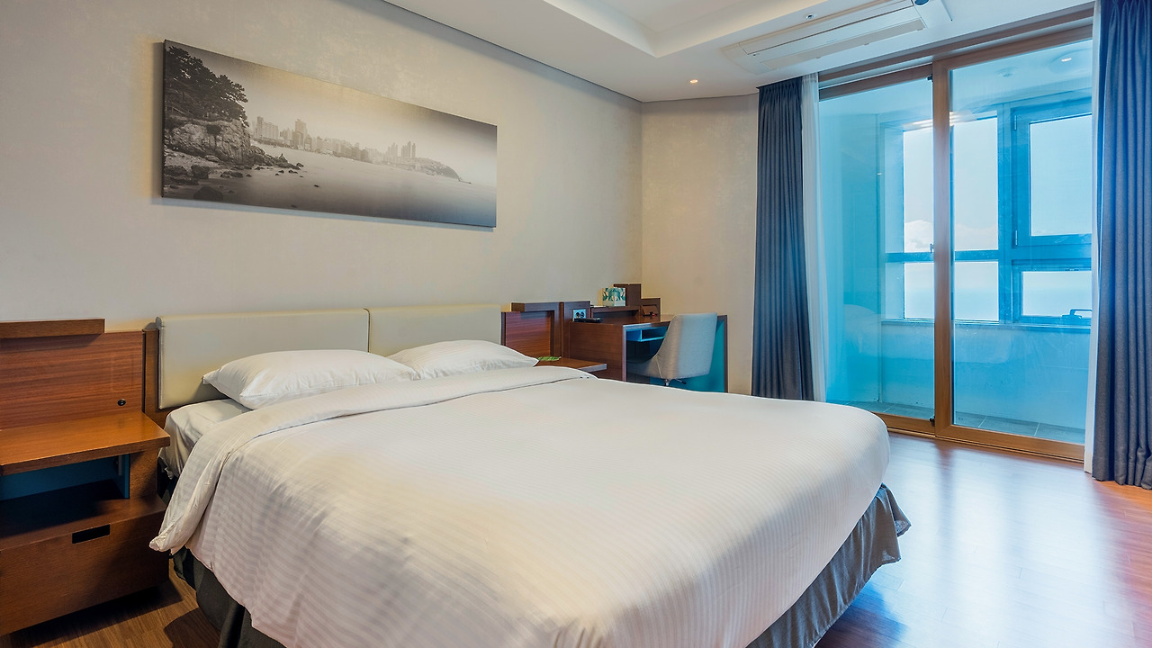 가장 인기 있는 객실은 단연 디럭스 더블룸이다. 더블 침대 1개가 놓인 구조로 커플 여행자에게 특히 추천되는 객실이다. 내부에는 TV, 냉장고, 전자레인지, 커피포트, 드라이어가 구비되어 있고, 욕실에는 샤워부스와 기본 어메니티가 준비되어 있다. 깔끔하고 아늑한 분위기 덕분에 해운대 해변을 즐긴 뒤 편안히 쉴 수 있는 완벽한 해운대호텔이다.