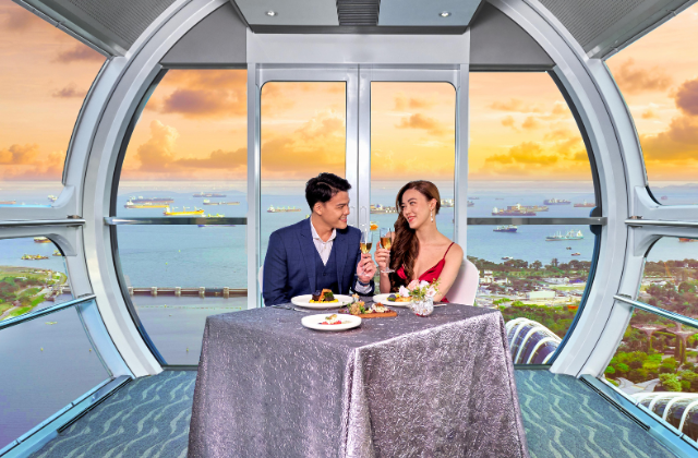 대관람차 싱가포르 플라이어에서 도시 전체와 마리나 베이를 한눈에 감상하며, 165 스카이 다이닝, 프리미엄 샴페인, 싱가포르 슬링 등 세 가지 옵션으로 로맨틱한 저녁을 즐길 수 있다. 특별한 경험으로 새해 여행에서 잊지 못할 추억을 남길 수 있다.