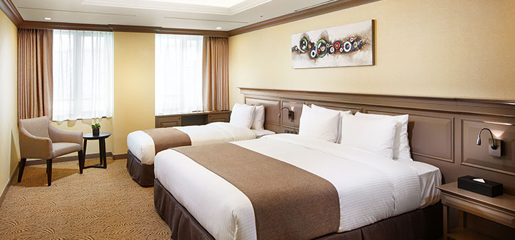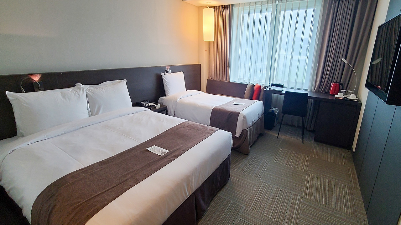 패밀리 트윈은 가족 여행 테마로 특히 추천하고 싶은 객실이다. 패밀리 트윈은 2인 기준이지만, 침대는 더블베드와 싱글베드가 트윈으로 구성되어 있어 아이와 함께 최대 3명까지 머물기에도 괜찮다. 어메니티로는 목욕 가운, 슬리퍼, 샴푸·린스·바디클렌저 등의 배스 용품이 기본 제공된다.