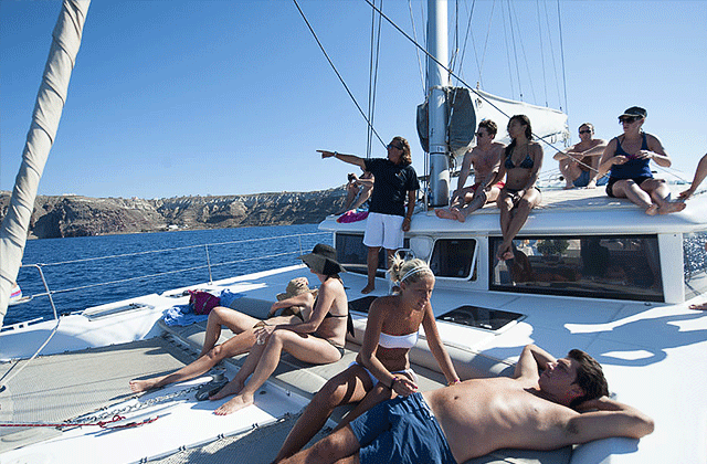산토리니의 아름다운 해안과 석양을 바다 위에서 가장 로맨틱하게 즐길 수 있는 크루즈 투어이다. 네아 카메니 화산섬과 온천 지역을 방문하고, 아크로티리 등 주요 해변 근처에서 수영 시간을 갖는다. 럭셔리 카타마란크루즈를 타고 즐기는 식사와 음료는 잊을 수 없는 신혼여행 추억을 선사한다.
