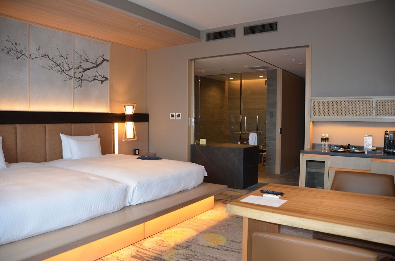 부모님 후쿠오카 여행을 계획한다면 하카타 스위트 트윈이 가장 만족도가 높은 객실이다. 넓은 객실 구조와 테이블 공간이 있어 짐 정리와 휴식이 모두 편리하다. 욕조와 샤워 부스가 분리되어 있어 부모님 세대도 편리하게 사용할 수 있다. 라운지 무료 이용과 고층 전망까지 갖추고 있어 가족 여행에서 특별한 시간을 보내기에 최적이다.