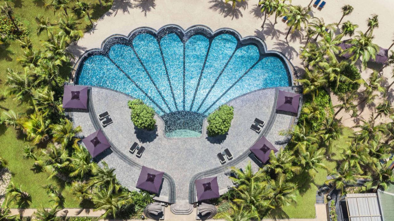 JW 메리어트 푸쿡 에메랄드 베이 리조트&스파의 디자인은 다낭의 인터컨티네탈 호텔 디자인을 맡았던 유명 건축가 빌 벤슬리(Bill Bensly)의 작품이다. 독특하게도 대학교가 컨셉이다. 리조트 동도 동물학, 식물학과 같은 학과 이름을 붙이고 그 컨셉에 맞게 디자인 했다. 바 라운지는 실험실 컨셉이고, 호텔 옆에는 운동장 트랙도 있다. 고객들은 학생이 되어 수업을 듣는 것처럼 액티비티를 즐길 수 있다. 조개 모양을 한 메인 풀도 잊지 말고 다녀와야 한다.