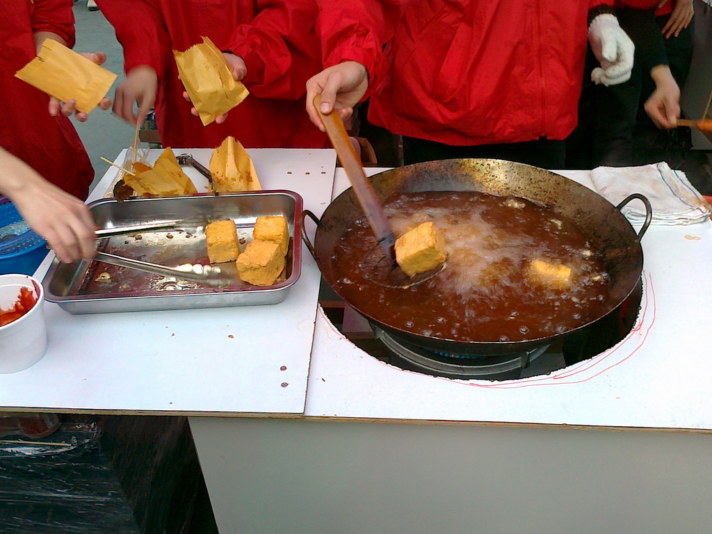 발효된 두부를 바삭하게 튀긴 후 칠리소스 등을 곁들여 먹는 중국 쪽 전통 길거리 음식인 취두부. 냄새가 지독할 뿐이지 실제 맛은 부드럽고 고소하다는 반전미 강한 음식이다. 냄새 때문에 호불호가 강하니, 일행과 함께 구입 후 입맛에 맞으면 추가 구매하는 것을 추천한다.