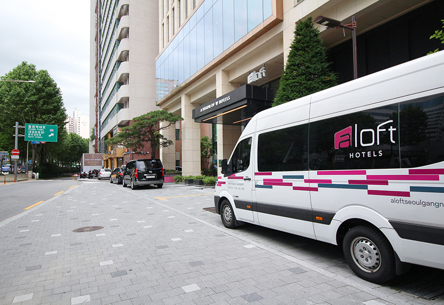 알로프트 서울 강남 숙박객들을 위한 무료 셔틀버스 서비스가 준비되어 있다. 코엑스, 공항도심터미널, 압구정, 가로수길, 신사역 등 인근의 주요스팟을 셔틀버스를 이용해 이동 가능하다. 오전 8시 30분부터 오후 2시 30분까지 운행하며 자세한 노선은 리셉션 데스크에서 문의하자.
