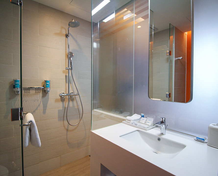 스위트룸을 제외한 모든 룸은 샤워실과 화장실, 세면대가 한자리에 있다. 어메니티 및 구성은 동일하다. 욕조 없이 해바라기 샤워기와 일반 샤워기가 부착되어 있는 형태다.