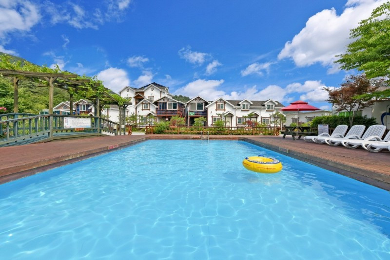 규모가 큰 야외수영장을 보유하고 있어 물놀이하기 좋고, 펜션 앞 계곡이 자리하고 있어 마음까지 시원해진다. 전 객실 독채, 복층 형태로 되어 있어서 프라이빗하게 숙박 가능하고 아이들이 마음껏 뛰어놀아도 안심이다. 아기자기한 동화풍의 객실은 간단한 취사시설이 구비되어 있어 편하게 이용 가능하다.