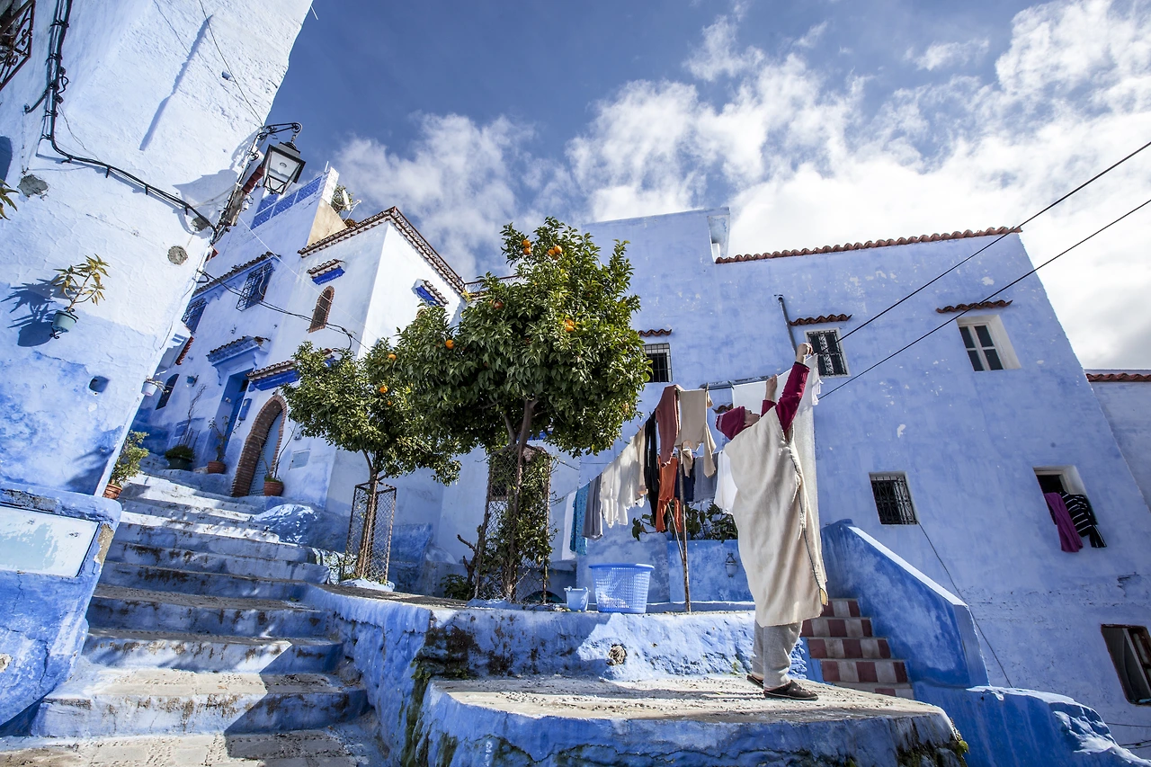 바다에만 파란 빛이 넘실대는 것은 아니다. 모로코의 깊은 산중에는 인간이 만든 아름다운 푸른 물결이 있다. 바로 리프산맥 중턱의 요새 도시 쉐프샤우엔(Chefchaouen). 스페인의 박해를 피해 떠나온 무어인들이 포르투갈 군에 대항하기 위해 만들어진 곳이 지금의 아름다운 모습을 갖추고 여행자를 맞이해 준다. 전통적으로 유대인이 많아 모든 건물이 파란색으로 칠해져 있는데, 안달루시아 특유의 건축양식이 더해져 전혀 새로운 정취를 자아낸다. 보통 푸른 마을 하면 그리스의 산토리니를 떠올리기 쉽다. 산토리니가 관광지를 여행하는 느낌이라면 쉐프샤우엔은 현지의 사람들이 살아가고 있는 곳에 잠시 머물다가는 느낌이 훨씬 강하다. 오랜 시간 이곳은 도시로서 기능하면서 전통과 문화를 고스란히 간직하고 있기 때문이리라. 이곳에서 전통의상 젤라바를 두른 동네 노인들의 산책을 따라다니다 보면 시간의 흐름을 잊은 채 푸른 마을의 물결을 유영하는 자유를 얻게 될 것이다.