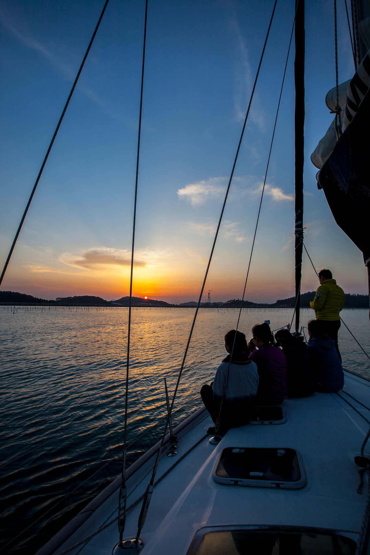 해가 지기 전에 바람이 잔잔하고 수심이 깊지 않은 곳을 찾아 배를 정박합니다. 뱃머리에 앉아 지는 해를 말없이 바라보는 일이 중요한 일상이 되죠. 그리고 다시 저녁 준비. 이런 단출한 삶을 언제 살아 봤나 싶을 정도로 그 나름의 원초적인 정취가 사람을 여유롭게 합니다. 고요한 바다 위, 쏟아지는 별 하늘 아래의 와인 한 잔은 세상의 어떤 먼지도 이곳까지는 오지 못할 거라는 느낌을 줍니다.