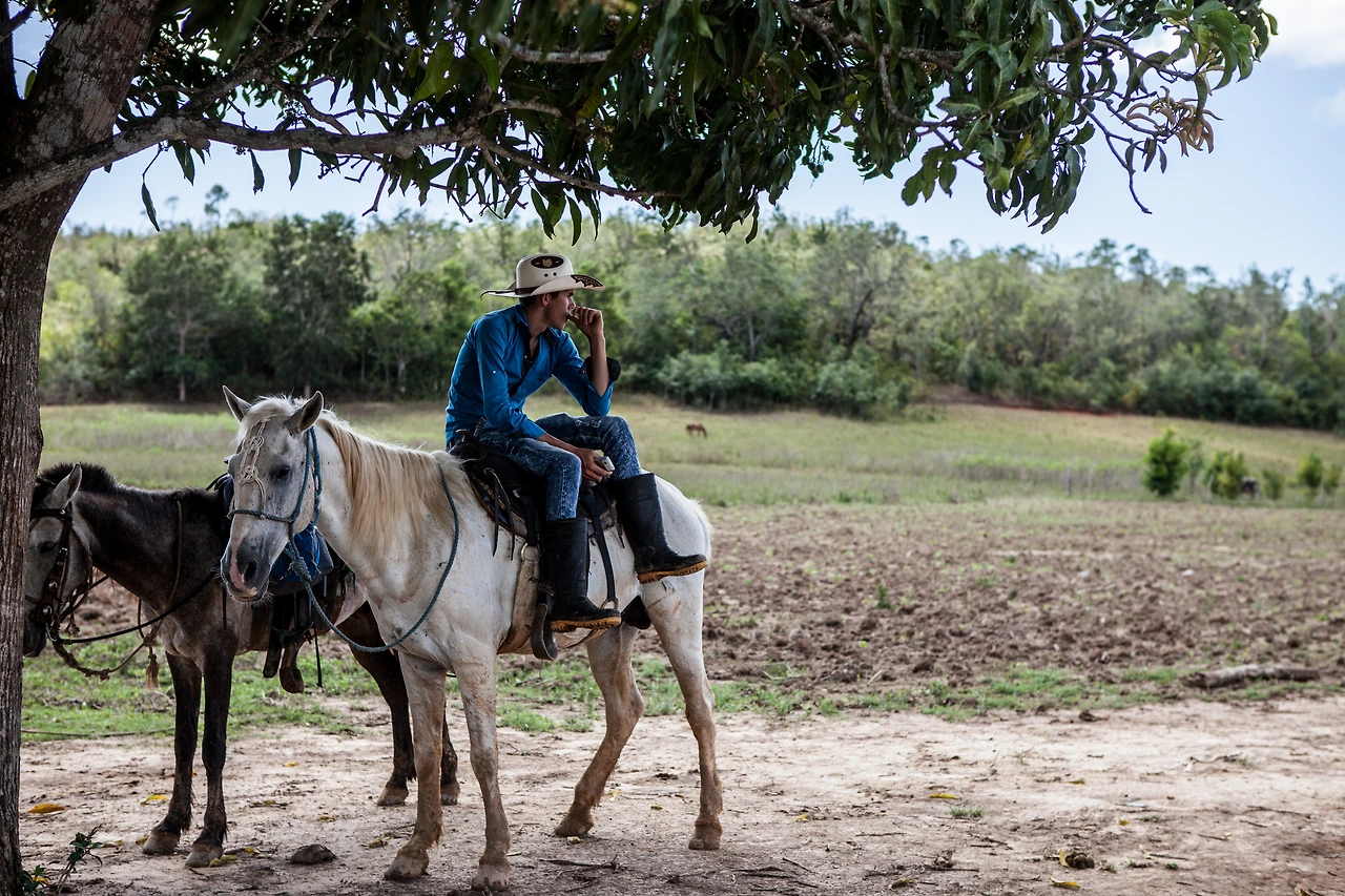해안의 아름다움을 보았다면 이번에는 산악지역인 피냐르 델 마르로 떠납니다. 이곳을 대표하는 도시 비냘레스는 중심가의 끝에서 끝까지 걸어서 20분이면 닿을 수 있는 소도시입니다. 그러나 도시를 벗어나 만나는 붉은 대지와 독특한 지형은 이곳을 역시나 유네스코 세계문화 유산으로 만들었습니다. 과거의 지도자 피델 카스트로가 애정하던 곳이기도 하지요. 우리가 학생 때 배운 카르스트 지형의 산을 만날 수 있는데요. 석회암 지형이 시간의 흐름에 따라 풍화되어 깎이면서 형질이 다른 부위가 남아 독특한 산 모양을 남기게 되었습니다. 쿠바에서는 모고테라 부르는 이 산들을 말에 올라 둘러보는 경험을 할 수 있습니다. 승마에 대한 경험이 없는 누구라도 비냘레스에서는 쉽게 체험해 볼 수 있는데요, 자전거나 트래킹도 있지만 온순한 말을 타고 다니는 코스를 추천합니다. 비옥하기 그지없는 이 지역에서는 세계적인 명성을 떨치고 있는 담배, 사탕수수, 커피 등을 재배하는 밭이 펼쳐져 있고, 그 사이 아름다운 강과 계곡이 있어 다양한 볼거리를 제공합니다. 중간에 들르는 종유석 동굴은 뙤약볕에 지친 사람들에게 시원한 기운은 불어넣어줍니다. 시가 농장 중간에 있는 커다란 오두막은 담뱃잎을 말리는 창고로 높이 쌓인 잎 들 아래서 시가의 종류와 만드는 방법들에 대해 들을 수 있지요.
