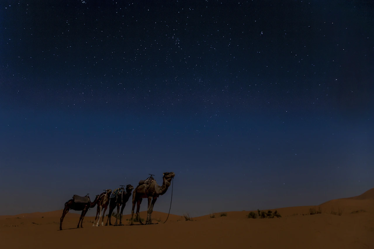 흔히 '사하라 사막'이라 부르는 사하라는 아랍어로 '사막'이라는 뜻이다. 결국 '사하라 사막'이라 쓰는 것은 동어반복이겠으나 사막 중의 사막이라는 의미로 해석된다면 꼭 틀린 말은 아니리라. 약 860만 ㎢에 이르는 세계에서 가장 광대하고 가장 건조도가 높은 사막이기 때문이다. 이 사하라가 바로 대서양 연안의 모로코에서 시작해 동쪽의 나일강에서 끝난다. 여정은 사하라의 관문, 에르푸드에서 시작된다. 그 길에 낙타와 함께 했다. 마치 모래로 뒤덮인 붉은 바다와도 같은 사하라는 약 1억 년 전 두 번의 빙하기를 거치고 풍화되면서 지금의 모습이 되었다. 낙타를 타는 일이 편안하지는 않으나, 사람의 보폭과 비슷한 낙타의 걷는 속도에 점차 적응이 되면서 사막 깊은 곳의 드넓은 모래언덕을 둘러볼 수 있는 최선의 선택임을 알게 됐다. 찬란한 달빛 아래 천막을 세우고 모닥불에 둘러앉아 사막의 밤하늘을 바라본 것은 두고두고 잊을 수 없는 장면으로 남을 것 같다.