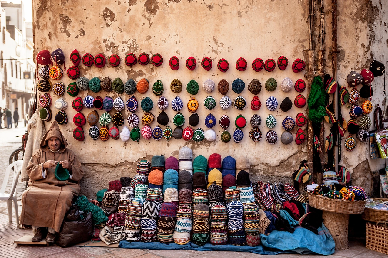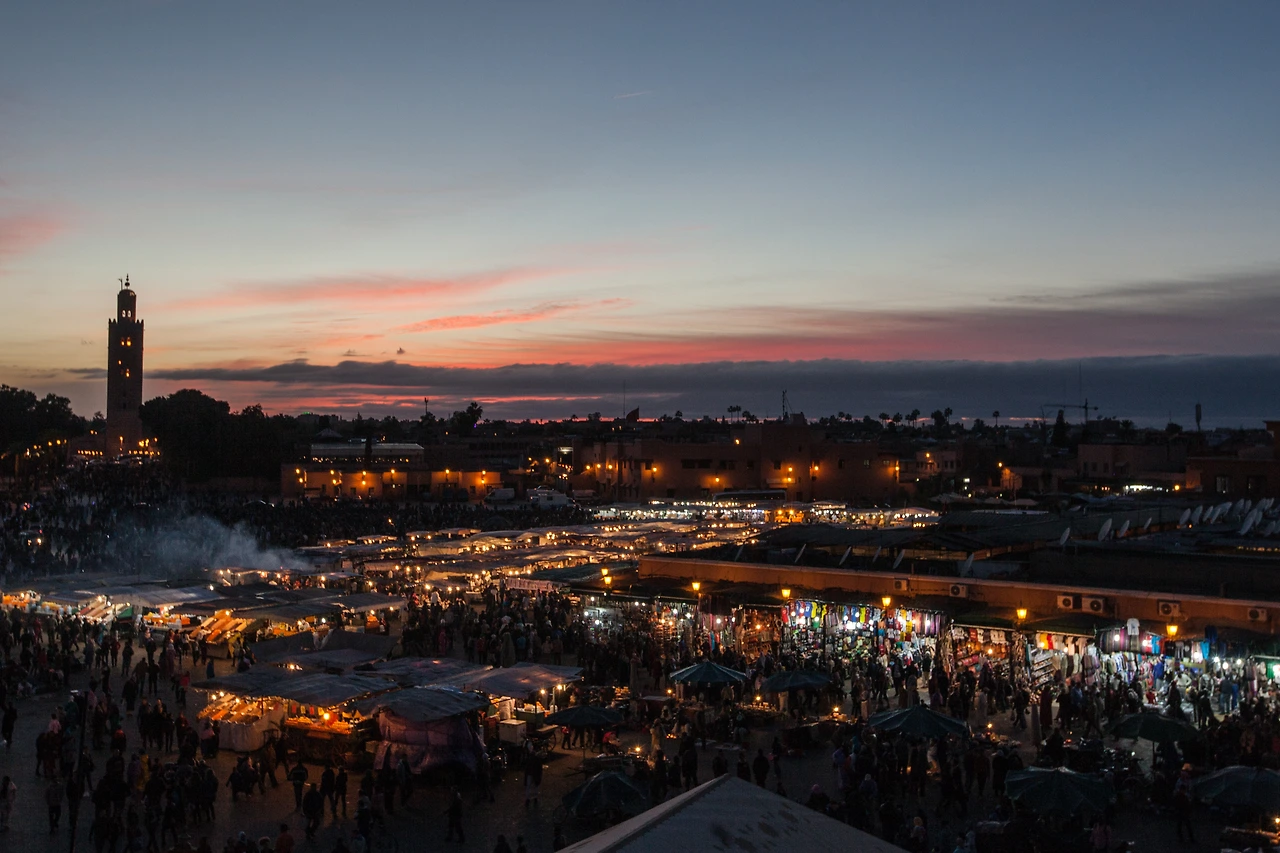 모로코의 국기는 붉은 바탕에 녹색의 별이 그려져 있다. 붉은색은 고대의 조상인 알라위트가(家)의 깃발 색에서 유래됐으며, 순교자의 피와 왕실을 의미한다. 또한 모로코의 붉은 토양에서 만들어낸 건축재료는 결국 '아프리카의 붉은 보석'이라는 별명을 붙여주었다. 특히나 마라케시(Marrakech)는 붉은색으로만 건물을 지어야 할 만큼 색채의 특성이 강한 도시다. 모로코의 고도(古都)인 페스(Fez) 다음으로 오랜 역사를 자랑하는 마라케시에는 이곳의 심장, 쿠투비아 모스크(Koutoubia Mosque)가 도시를 가만히 내려다보고 있다. 12세기 말에 건립된 이 모스크의 첨탑은 높이가 77미터나 되어 도시 어디에서나 여행자들이 방향을 가늠케 하는 지표가 되어준다. 하루 다섯 번, 이슬람교 특유의 기도소리 '아잔'이 흘러나오면 신도들은 각자의 위치에서 성지 메카를 향해 기도를 올린다. 특히나 해질 무렵 들려오는 아잔 소리는 도시의 정취를 더욱 진하게 한다.