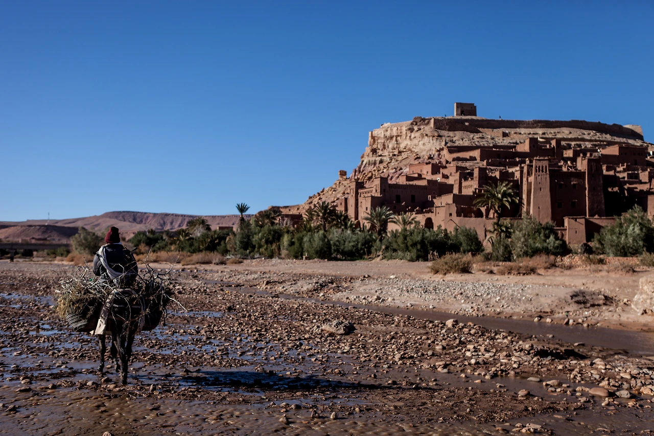 붉은 사막 사하라에 가기 전에 거쳐야 할 곳이 하나 있다. 5시간 영화 아라비아의 유산, 글래디에이터의 배경지로 잘 알려진 아이트 벤 하두(Ait Ben Haddou)는 11세기에 지어진 카스바(성채, 주거공간)이자 요새 역할도 겸했던 건축물로, 유네스코 지정 세계문화유산이다. 모로코 남부의 황량한 지역에 우뚝 솟은 이 요새 마을 유적은 모로코 전통 건축의 전형을 보여주기도 한다. 모로코와 알제리, 튀니지에 걸쳐있는 2,000m 길이의 아틀라스 산맥 중턱에 위치한 이곳에선 마을 전체가 방어벽으로 둘러 쌓여 특유의 위풍을 고스란히 느낄 수 있다. 방어벽 안쪽에는 카스바라 불리는 성채이면서 거주가 가능한 건물이 들어서 있는데, 대저택과 일반주택, 학교 회당을 비롯 시장과 외양간 등이 미로처럼 얽혀있다. 그리 크지는 않아도 곳곳에 숨은 다양한 공간을 찾아보며 천천히 마을 꼭대기에 올라가 내려다보는 풍경은 모로코의 자연과 역사를 한눈에 볼 수 있다. 과거 상인들의 거점에서 예술가들에게 영감을 주는 도시로 변모하고 있다.