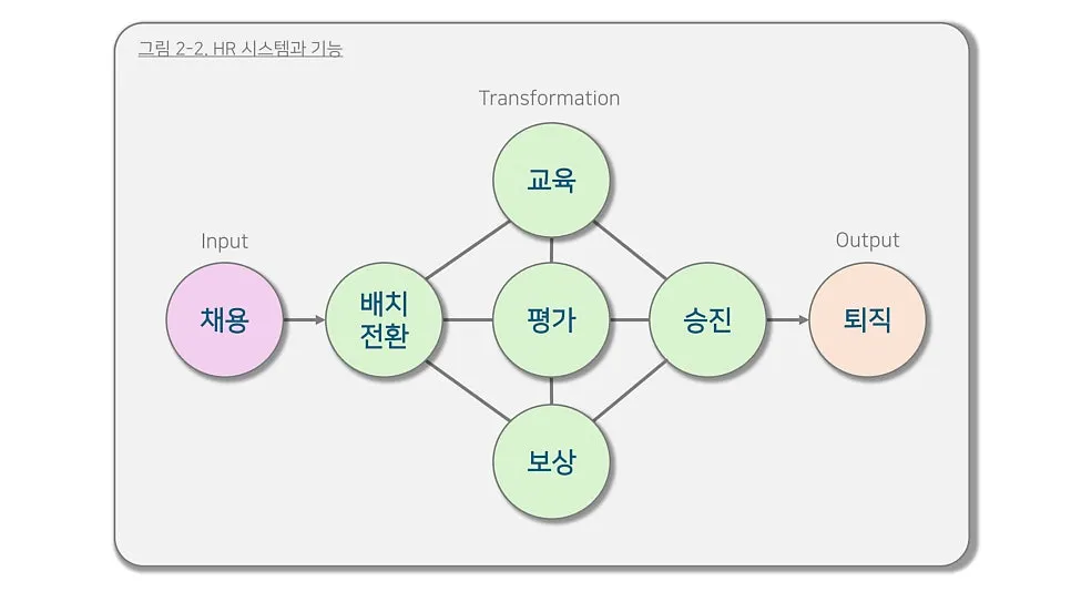 - 다만, 어떠한 구분을 따르더라도 일반적으로 확보(채용), 교육(인재개발), 평가, 보상, 유지, 방출까지의 6가지 기능은 대부분 공통적으로 들어갑니다. 그리고, 노무(ER, 노사관계)는 HR과는 구분되는, 특화된 기능으로 구분하거나 "유지"기능에 포함시킬 수도 있습니다.4)